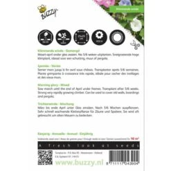Bloemenmengsel dat bestuivende en nuttige insecten aantrekt: Alyssum, Thlaspi, Eschscholzia, Duizendblad, Bernagie, Korenbloem, Klaproos, Prikneus, Margriet, Vlas, Goudsbloem, Lupine, Slangekruid.
