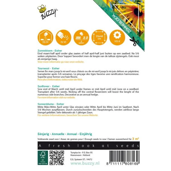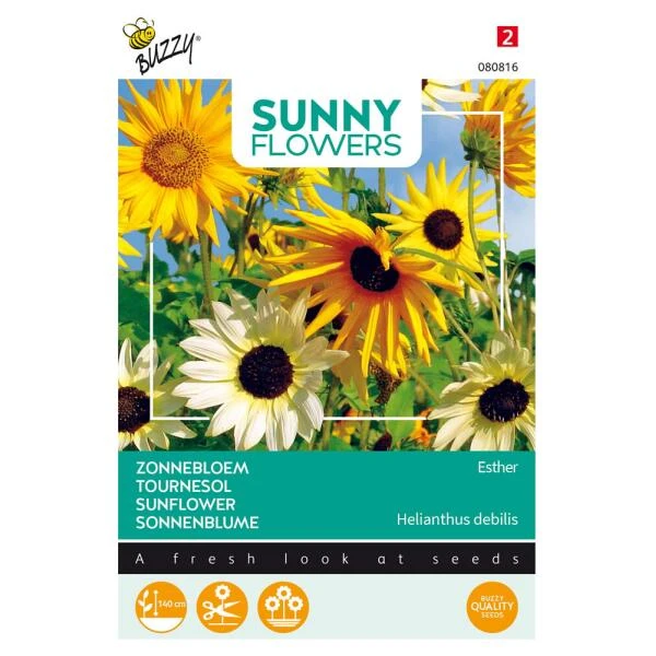 Zaden van zonnebloemen, Helianthus Esther om zelf zonnebloemen in de tuin te zaaien.